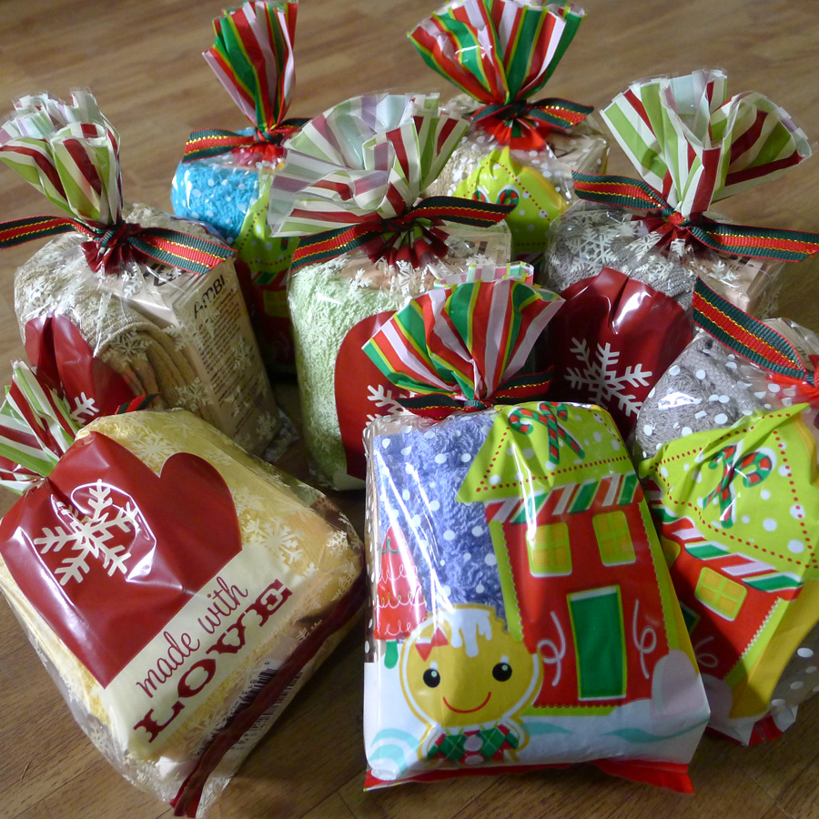 I used them to wrap the Christmas goodies I am giving my office colleagues this year. Look how cute they turned out, even if they’re not filled with edible treats!